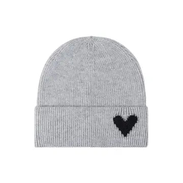 Grey and Black Heart Embroidered Beanie