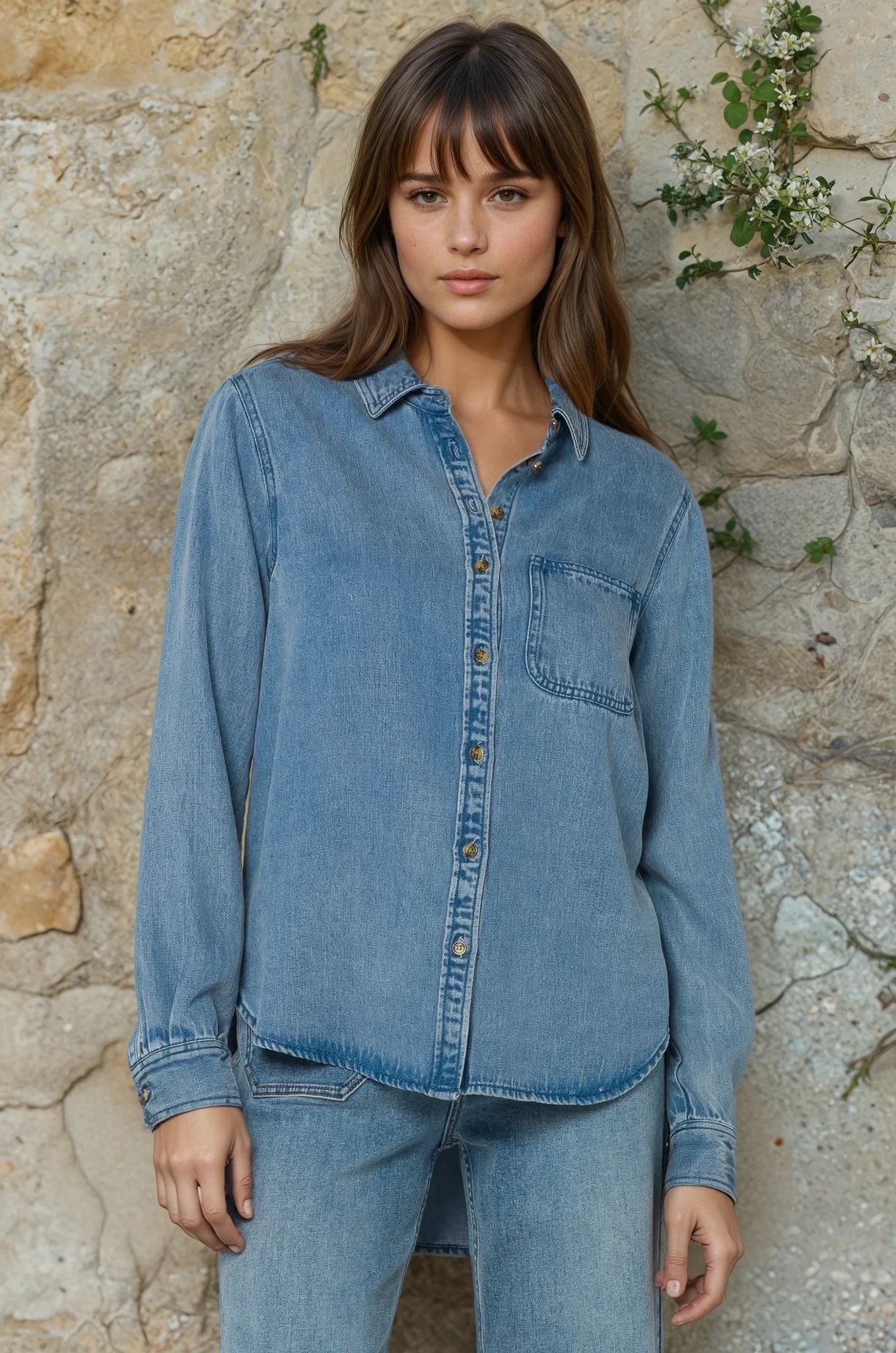 • Denim like button-up shirt