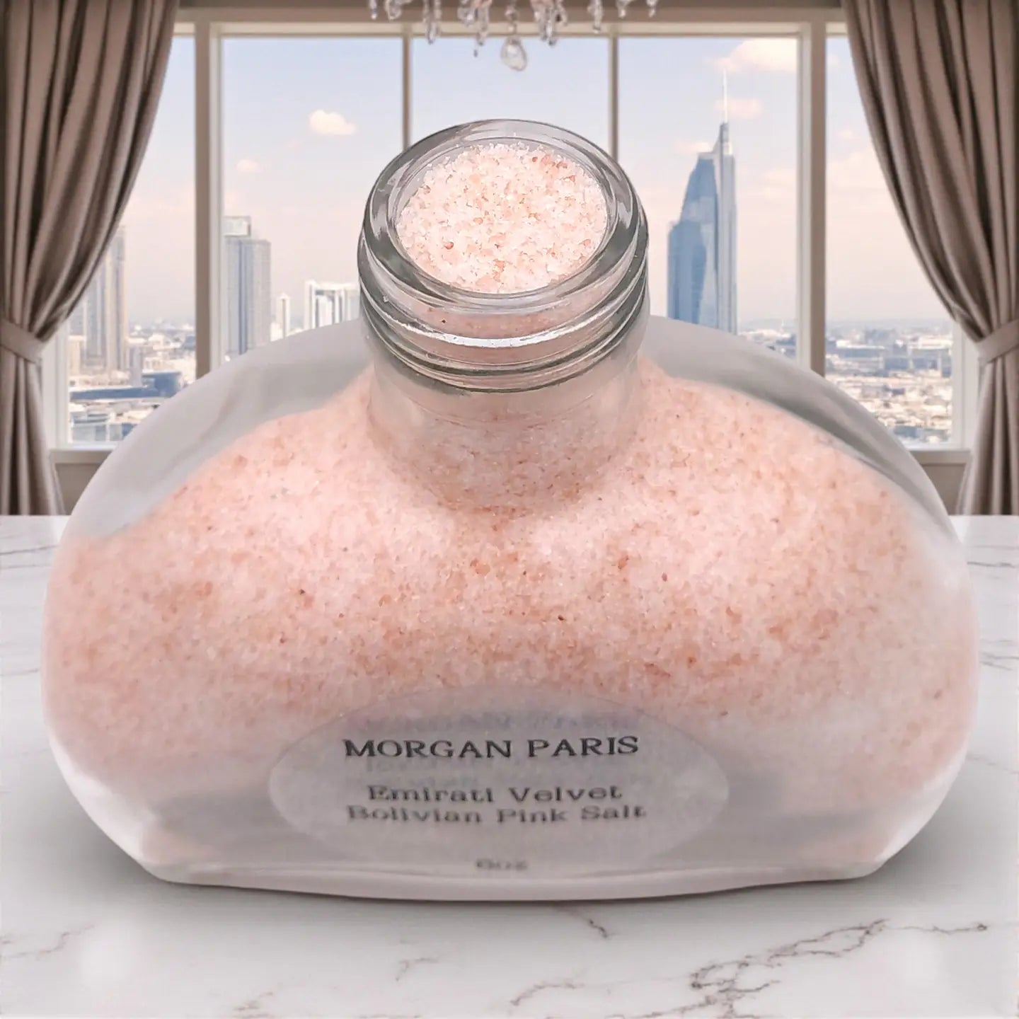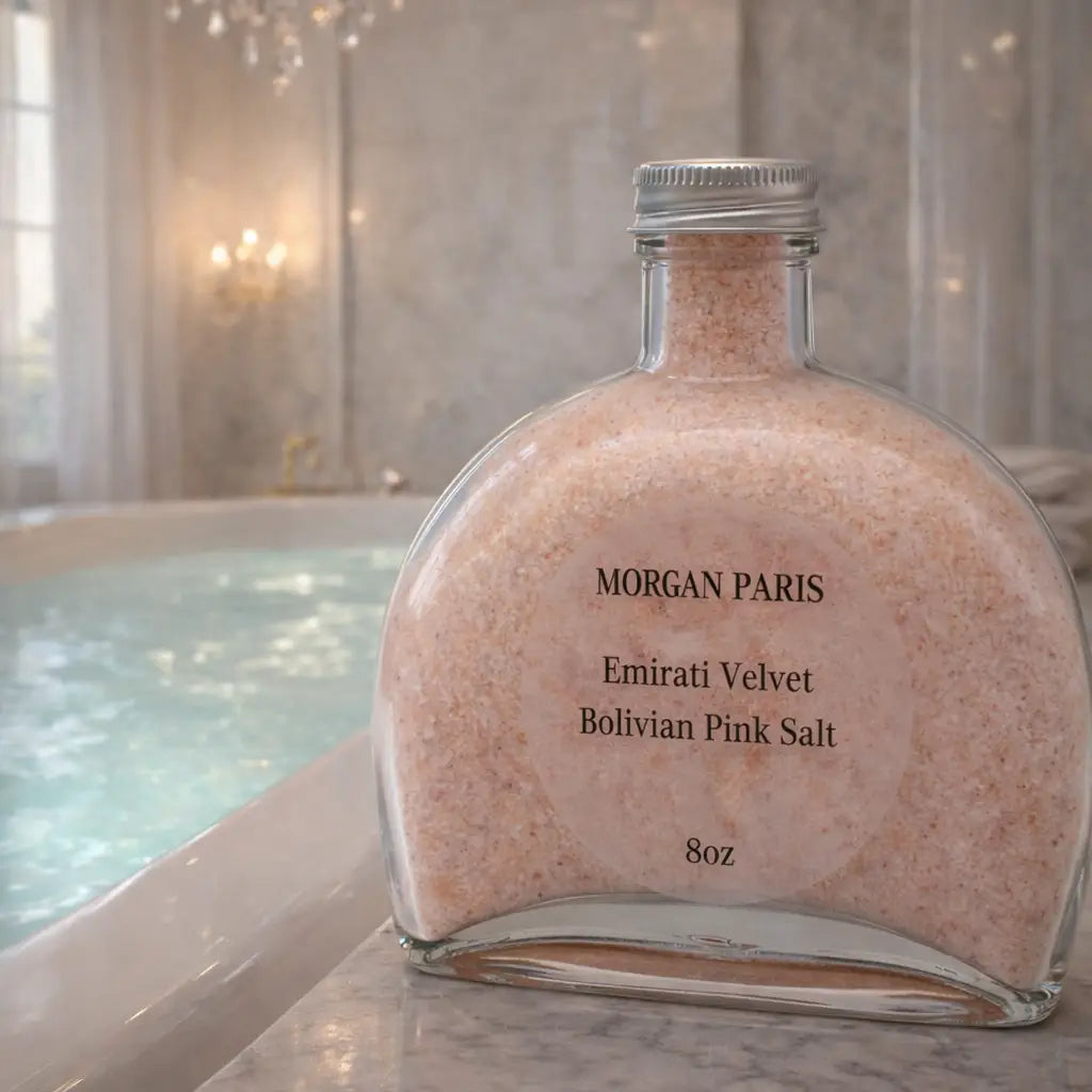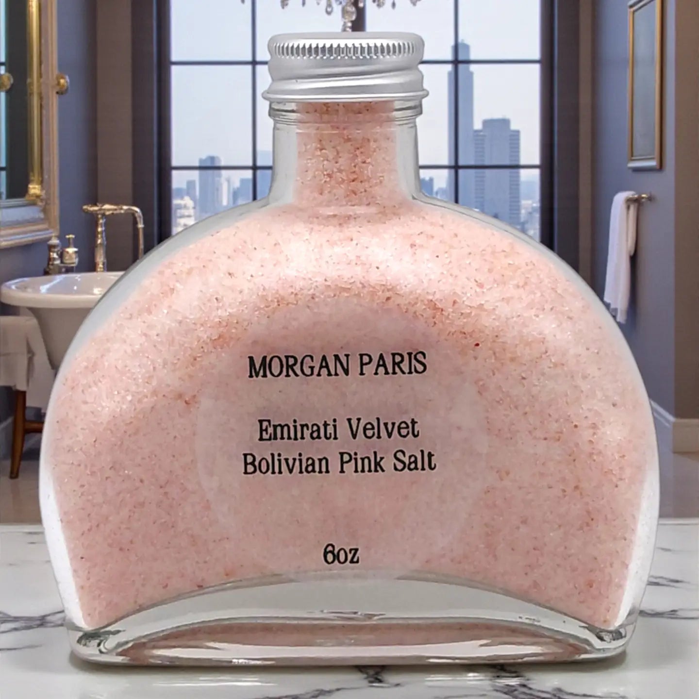 Emirati Velvet Bolivian Pink Salt transforms your bath into a luxurious escape inspired by desert sunsets and Middle Eastern elegance. As warm water dissolves each mineral-rich crystal, a velvety aromatic warmth unfolds—opening with creamy vanilla orchid that drifts like a soft desert breeze, then deepening into rich tonka bean sweetness. Watch your ordinary soak become an indulgent ritual where every moment reveals something new. Perfect for those who believe bath time should feel like a getaway, not just a routine.