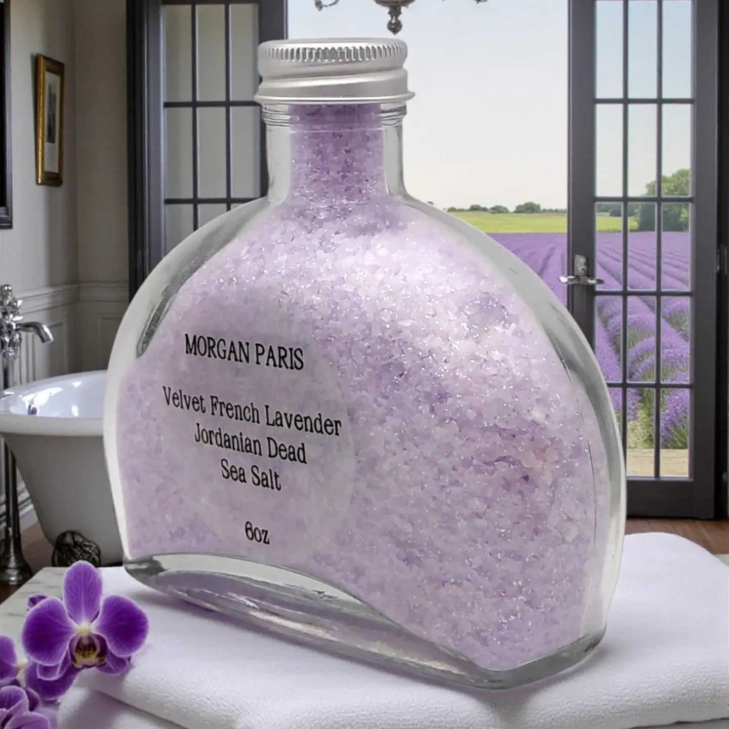 Velvet French Lavender Bath Salts Sink into pure indulgence with our Velvet French Lavender bath salts—where luxury meets self-care. Infused with mineral-rich Jordanian Dead Sea salt, these shimmering lavender-hued crystals dissolve into warm water, releasing detoxifying minerals that pamper your skin and soothe tired muscles. Watch the magic unfold as the fragrance awakens with a bright bergamot kiss, softened by delicate lavandin and clove. French lavender blooms at the heart, dancing with sweet orange and grounding notes of Nootka tree and Cedrus Atlantica for an airy, sophisticated finish. Each soak is a sensory journey—subtle at first, then gradually revealing itself as warmth and steam coax out the full aromatic experience. Transform your bath into a serene escape that feels anything but ordinary.