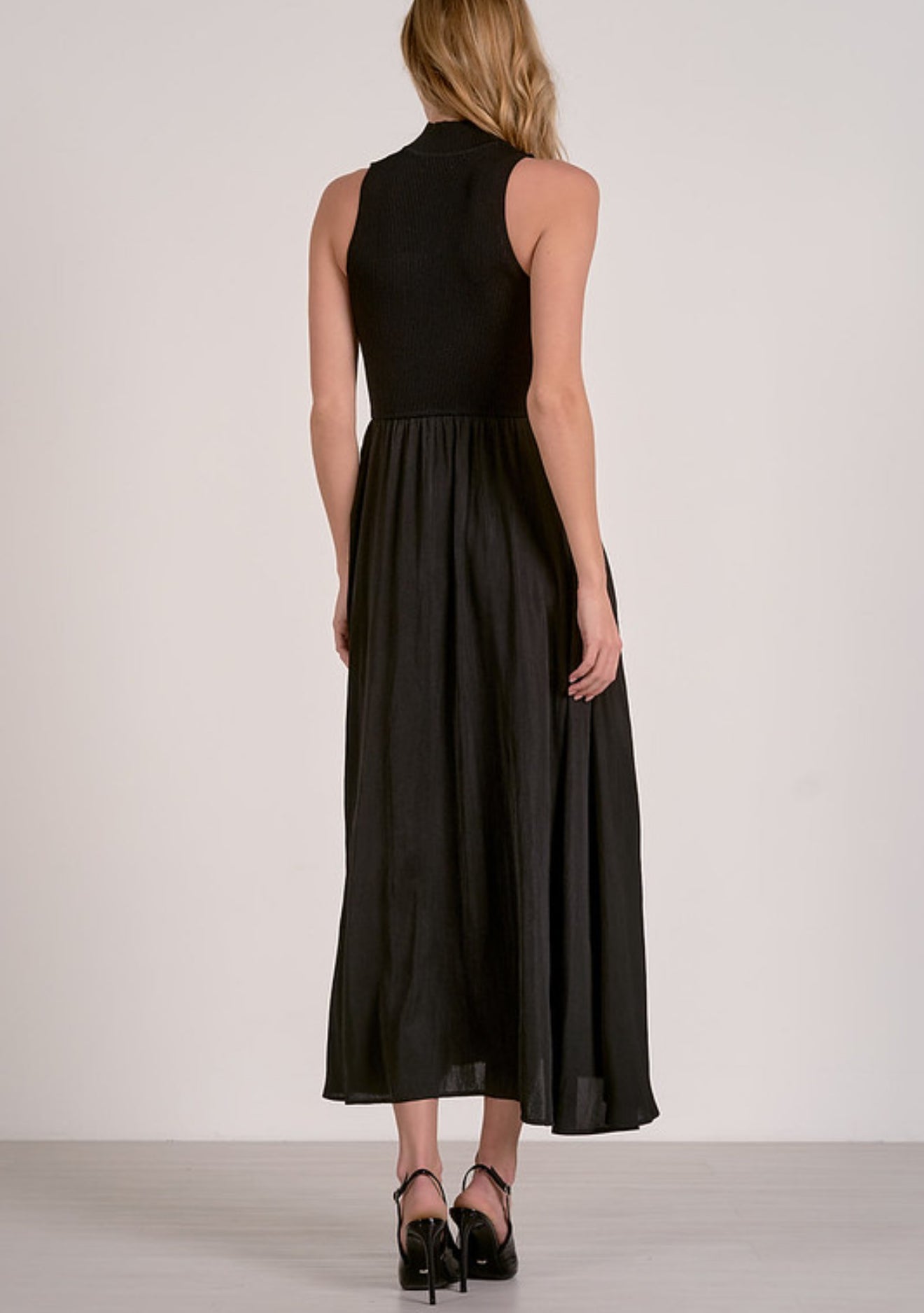 Slip into the Lennon Black Maxi Dress, where cozy knit meets silky satin for a fun twist on elegance. Its sleeveless design keeps you cool, while the flowing skirt invites twirls and daydreams. Perfect for making every moment feel effortlessly chic and playful.
