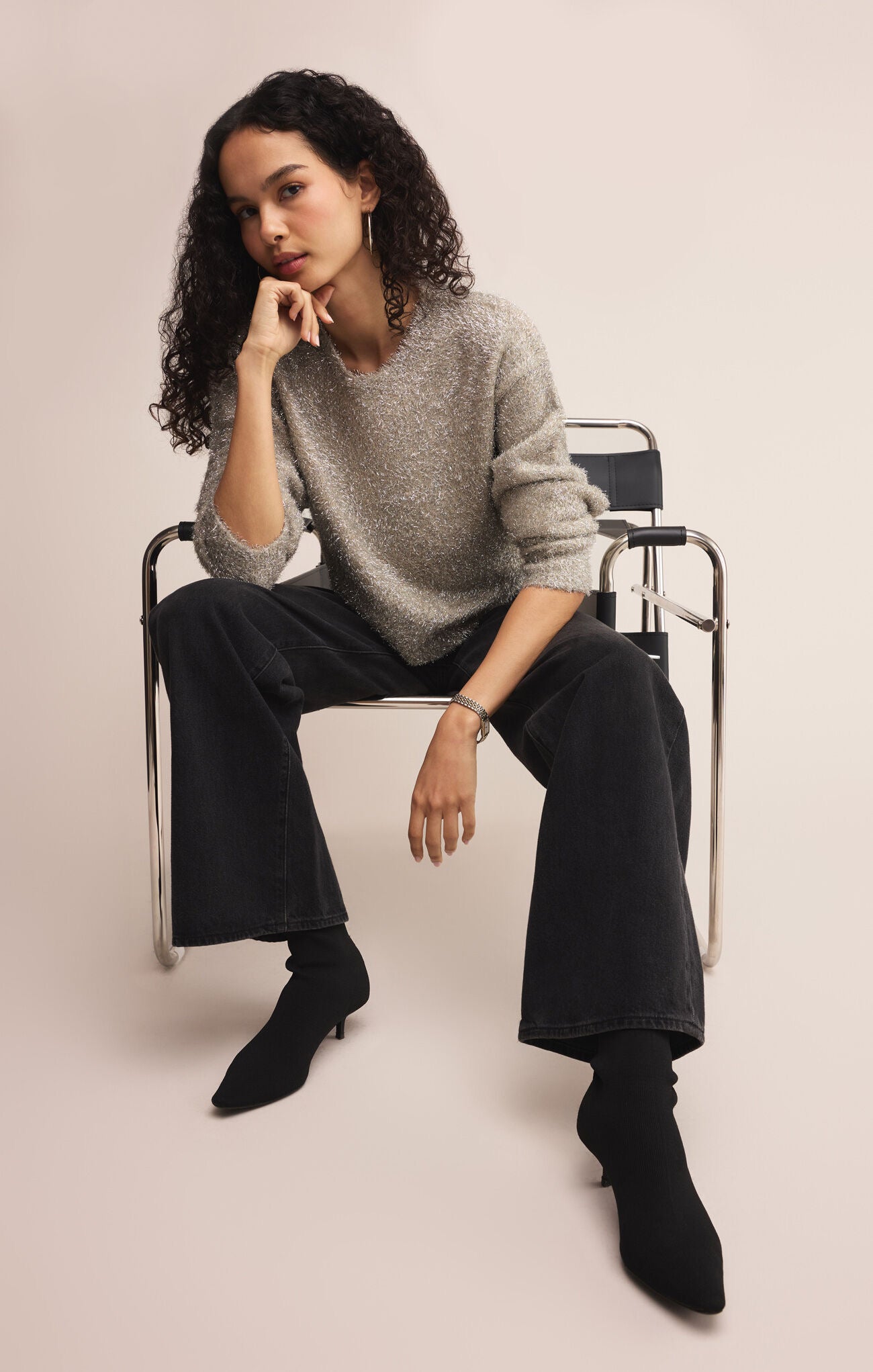 Sparkle through the season in this Z Supply Tinseltown Sweater, where metallic magic meets cozy comfort. Perfect for holiday parties or winter nights out, this eye-catching piece features a shimmering fabrication that catches the light and turns heads wherever you go. Slip it on and feel your confidence shine as bright as the tinsel itself. Whether you're celebrating or simply elevating your everyday look, this sweater delivers instant glamour and undeniable style.