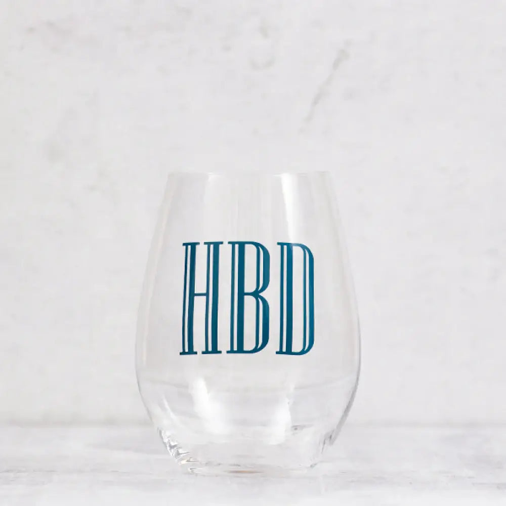 Simply say "Happy Birthday" with our stemless Classy HBD Wine Glass. It also features a description card to explain the acronym to the gift recipient. Keep this in your gift closet for all the upcoming birthdays so you never forget a gift.