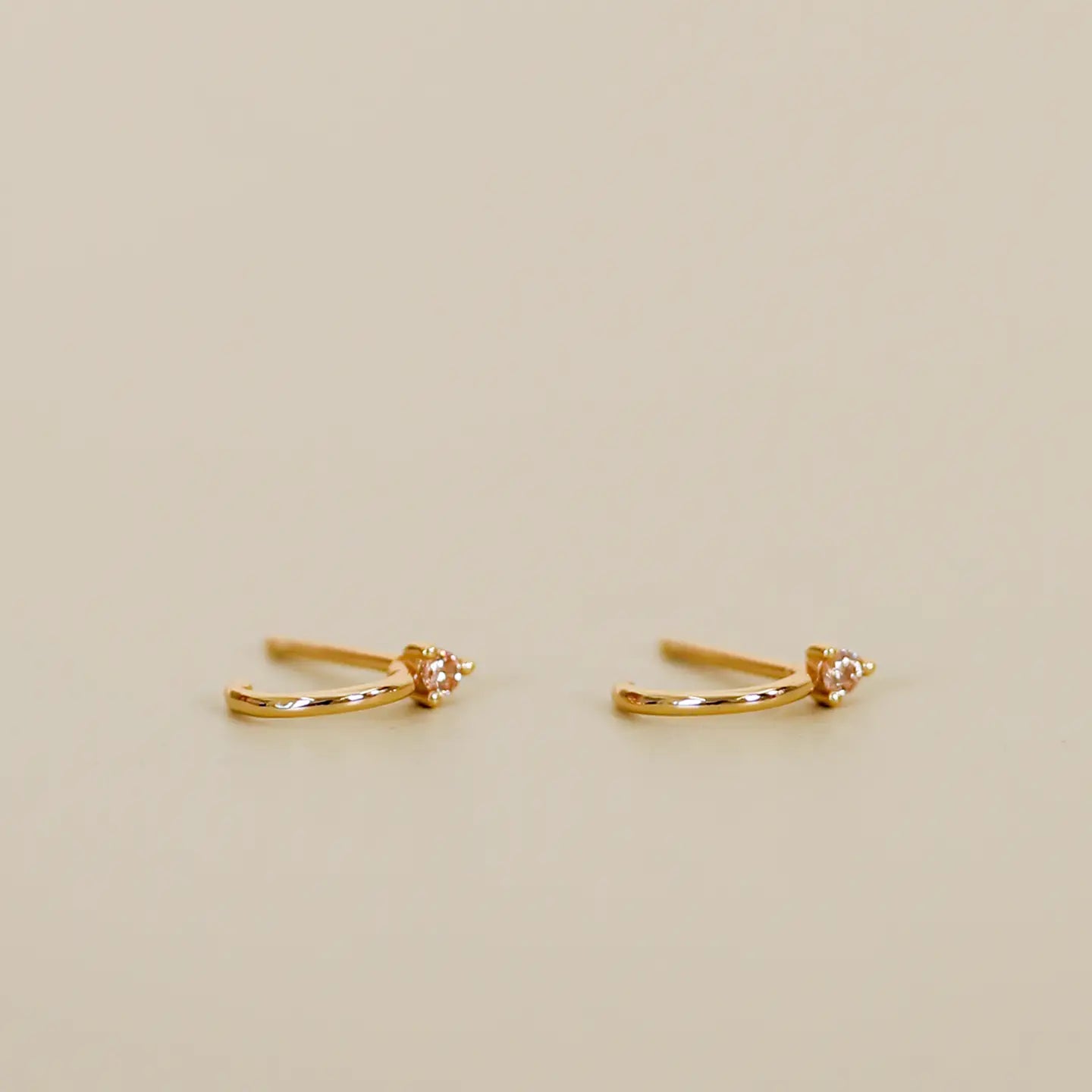 Tiny but mighty, these open mini hoops pack serious sparkle with a champagne CZ that catches the light beautifully. The straight-back post sits comfortably with a 7mm hoop opening that hugs your ear perfectly—wear them solo or stack them for extra glam. Crafted with hypoallergenic sterling silver posts and 18K gold plating, they're built to last through sweat, water, and all your adventures. Tarnish-free coating keeps them looking fresh, so you can rock these little stunners anywhere, anytime.