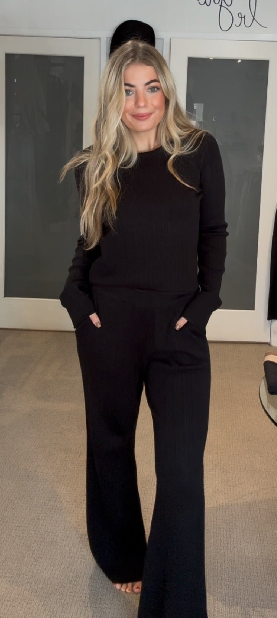 These high-rise, full-length pants combine comfort and style with their elastic waistband and side seam pockets for practicality. Crafted from 100% acrylic sweater knit, they feature a heavy soft wash that delivers a lightweight yet cozy feel. The regular fit and 29 3/4" inseam ensure a flattering silhouette suitable for everyday wear.