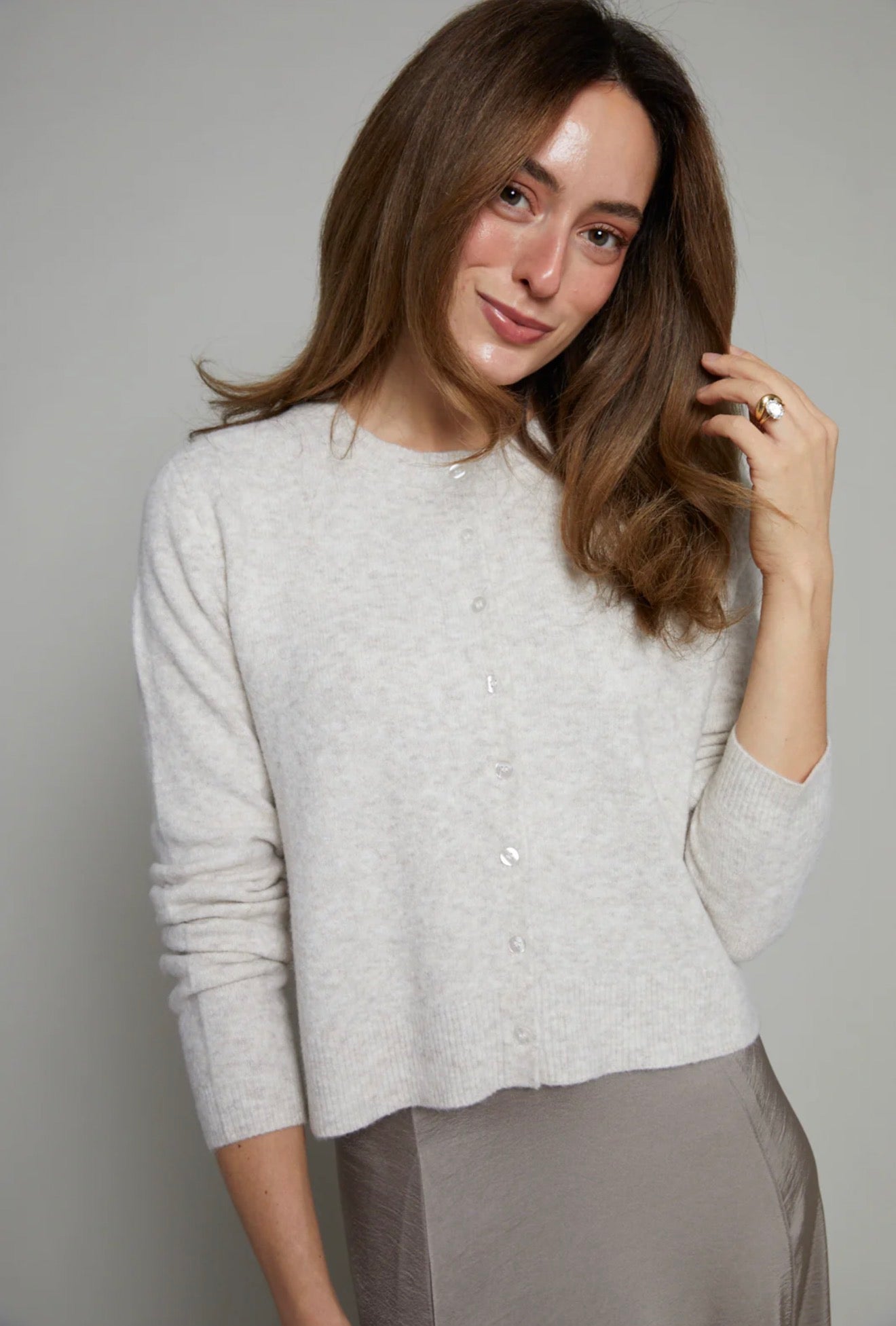 This relaxed crewneck cardigan is made from cozy sweater yarns with an easy button-up front that’s perfect for layering. Whether tossed over a tank or worn solo, it’s the ideal go-to for cozy, casual days.